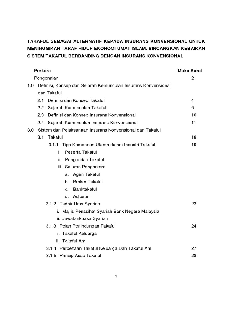 Kebaikan Sistem Takaful Berbanding Dengan Insurans Konvensional Pdf
